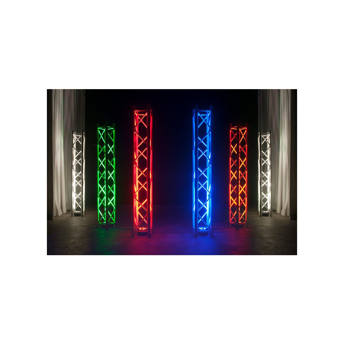 5PX HEX professional features include: 4 DMX modes (6, 7, 8, & 12 channel), 5 operational modes, 5 dimming curves, flicker free operation and a 4-Button DMX menu with digital display. Daisy-chain up to 11 units together via the fixtures built-in Locking Power In/Out connectors.