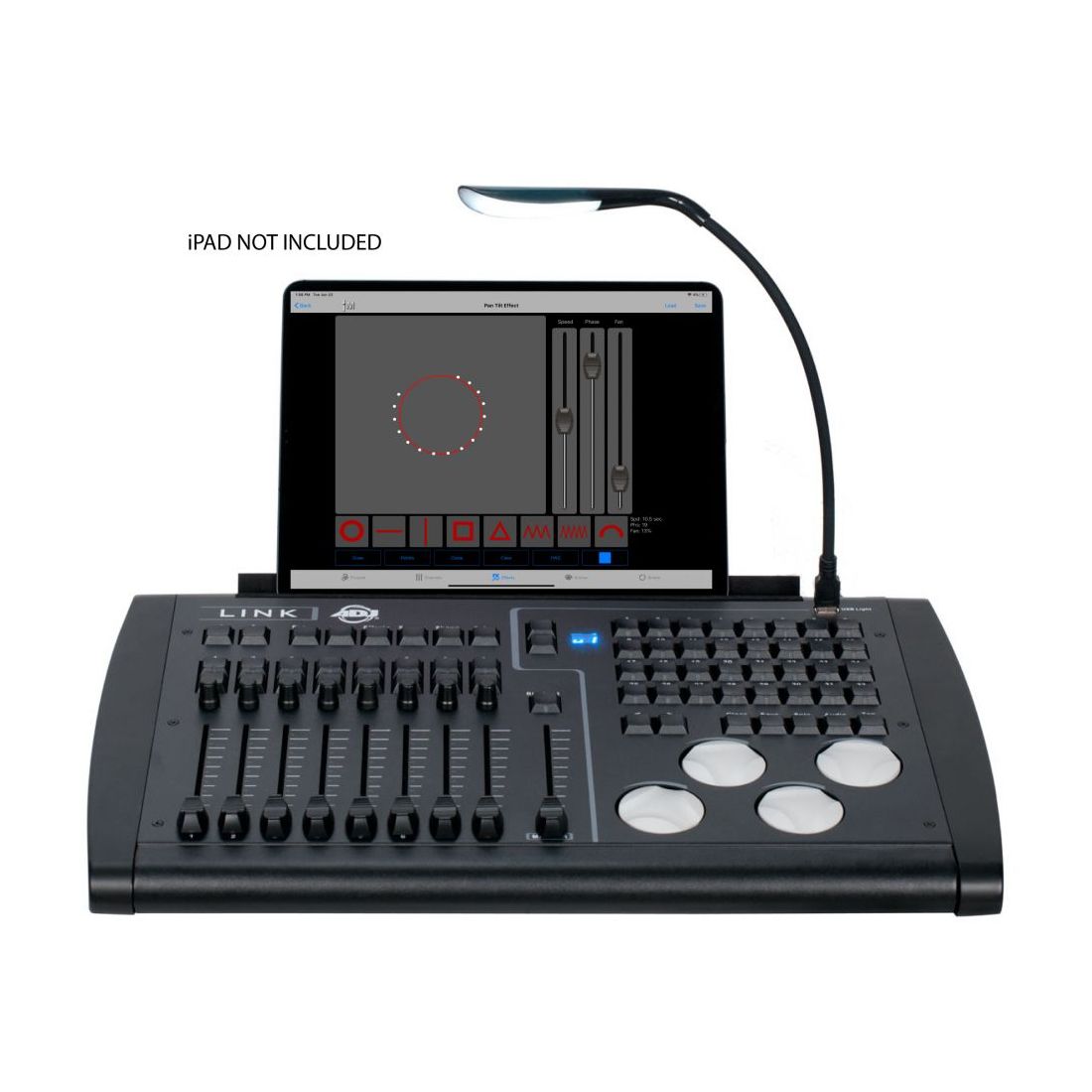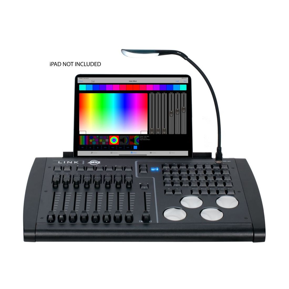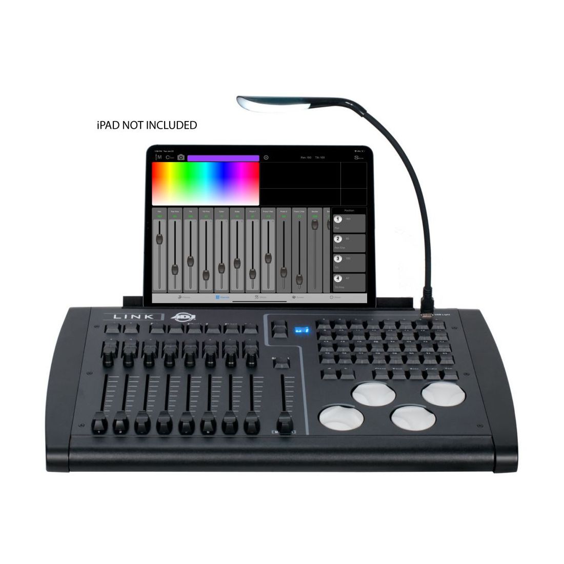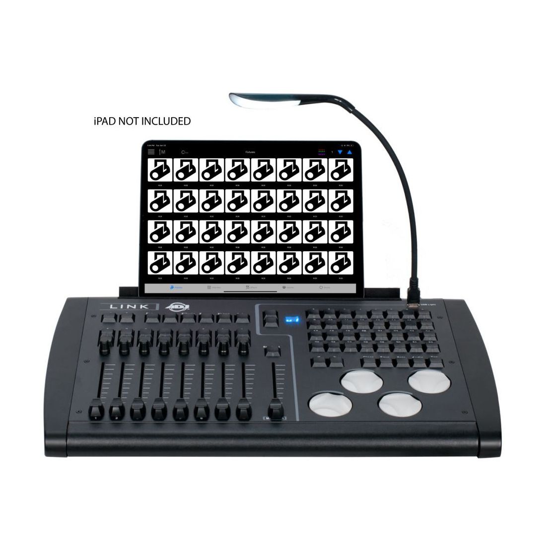 The ADJ LINK controller is compatible with the dedicated Airstream LINK iOS APP for iPad, whick can be downloaded here: https://apps.apple.com/us/app/airstream-dmx-link/id1487843782