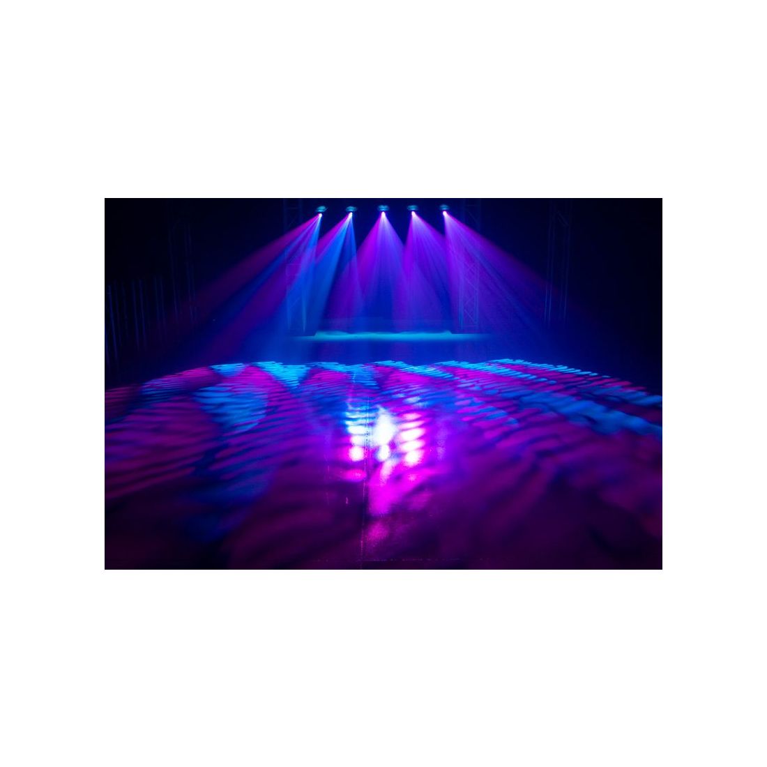 The Focus Spot 5Z has Locking Power In and Out connectors to daisy chain the power, as well as Locking 5-pin DMX In/Out to transmit a DMX signal from one fixture to the next. There is a USB firmware update port built-in plus advanced control options such as: 16-bit fine pan and tilt, multiple DMX control modes and 6 different dimming curves. The Focus Spot 5Z offers a robust light output in a light weight, compact foot print (18-inch high and one 23 pounds/10kg).