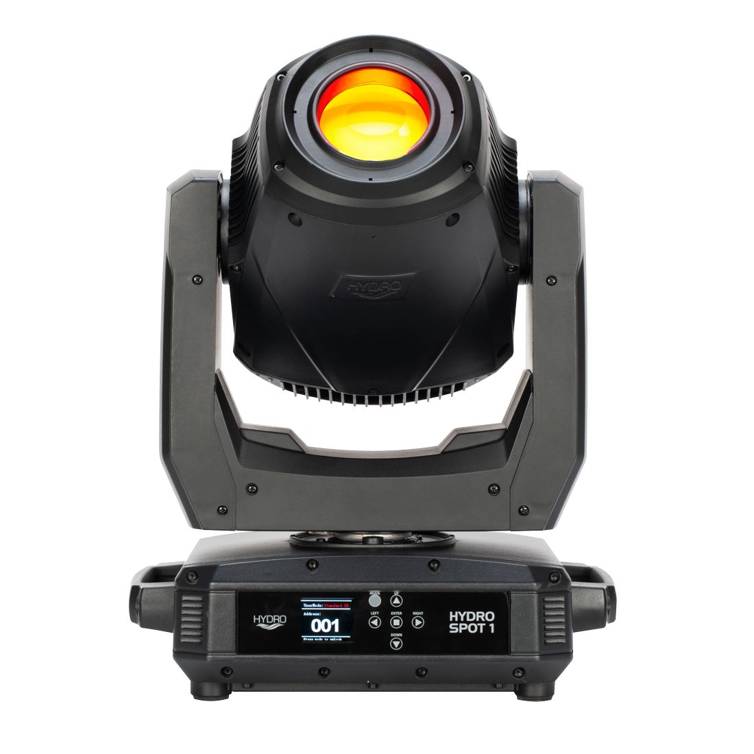 An extensive feature set provides lighting designers using the Hydro Spot 1 with a wealth of creative potential. This starts with motorized zoom, allowing for a variable beam angle of 11° ~ 22°, which is paired with motorized focus to ensure pattern projections remain sharp regardless of distance. The fixture features two independent color wheels, each loaded with 8 dichroic colors, including CTO, CTB and UV filters. It also features a separate GOBO wheel, which has 6 slots for replaceable, rotating glass or aluminum GOBO patterns. Two rotating prisms (5-facet linear & 6-facet circular) allow for the creation of stunning aerial effects, while two frost filters (medium and heavy) allow for blurring the edges of GOBO patterns and creating a wash output, respectively.